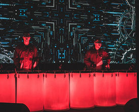 Tuch-Luftakrobatik meets LED-Geige & LED Trommler